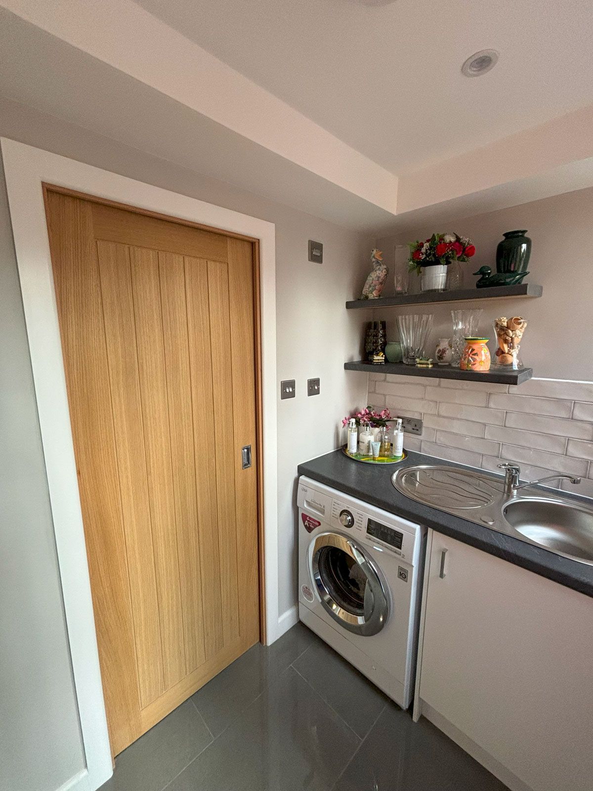 In addition a new shower room and laundry area was created with necessary walk through areas and pantry making the best use of the new space.